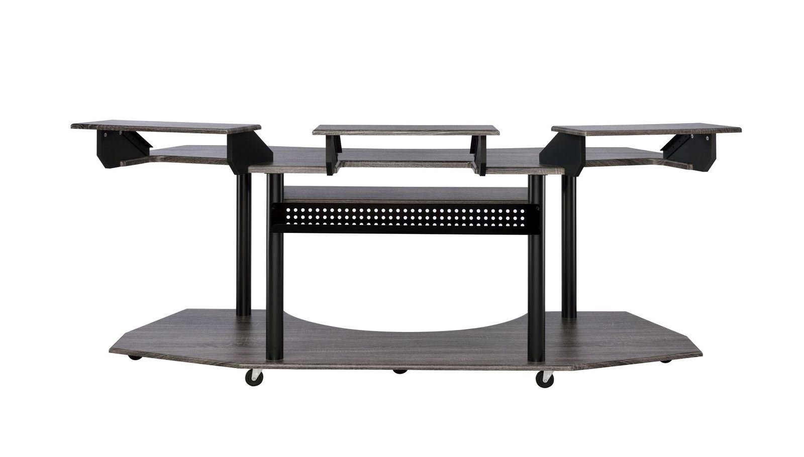 RomanceWith no detail left unnoticed, this Eleazar Music Recording Studio Desk provides excellent functionality and versatile organizing options. With an extensive desk top design, plenty of workable surface area is left. The multi-function hutch is perfect for displaying monitors, speakers, documents, and books. While the lower shelf can be used to place larger items. Available in two sizes and two different finishes, this contemporary piece will sure to be the perfect addition to your home office.