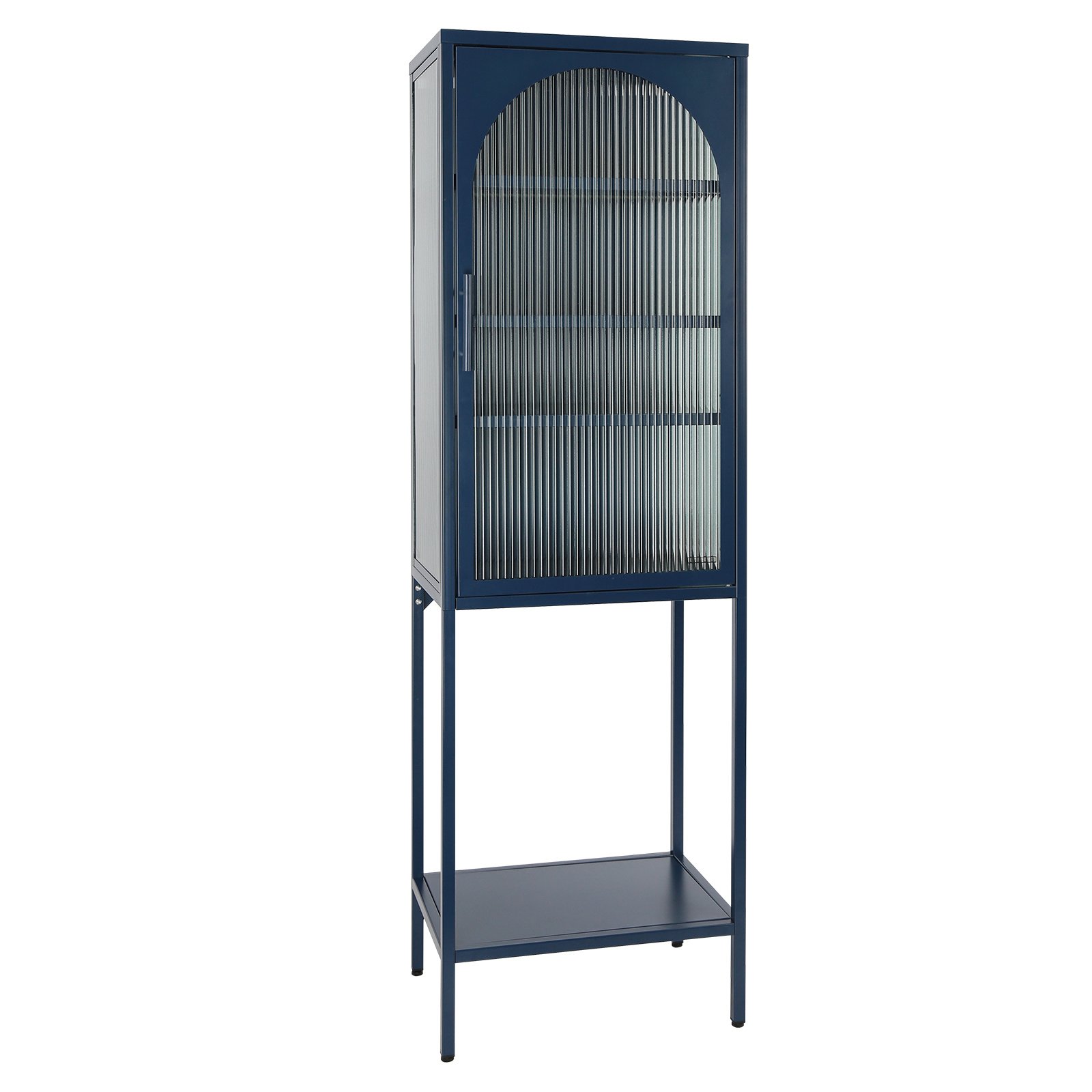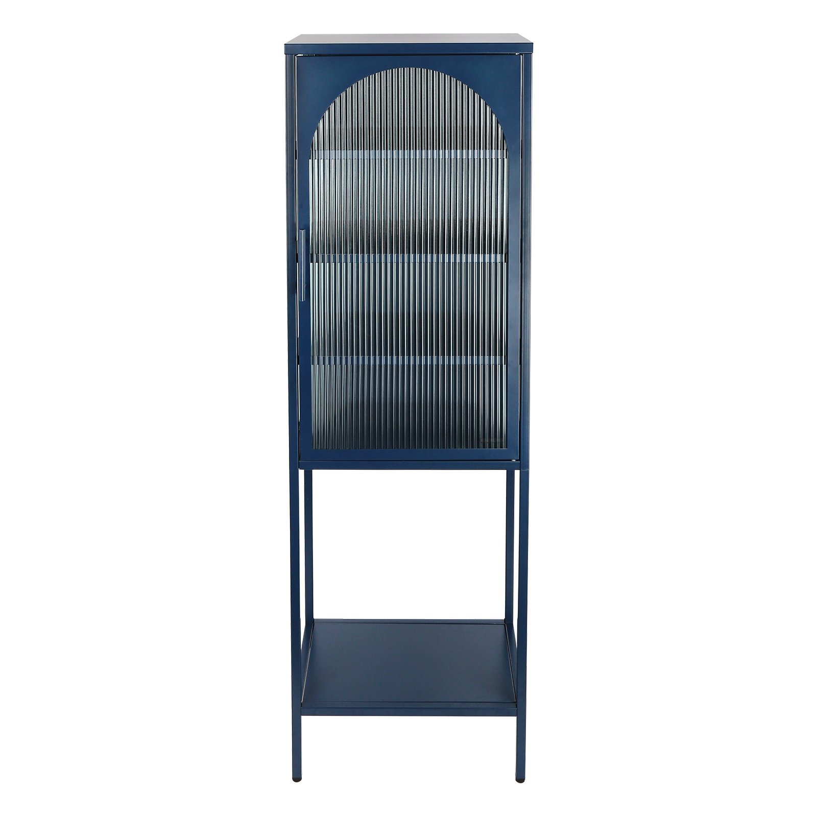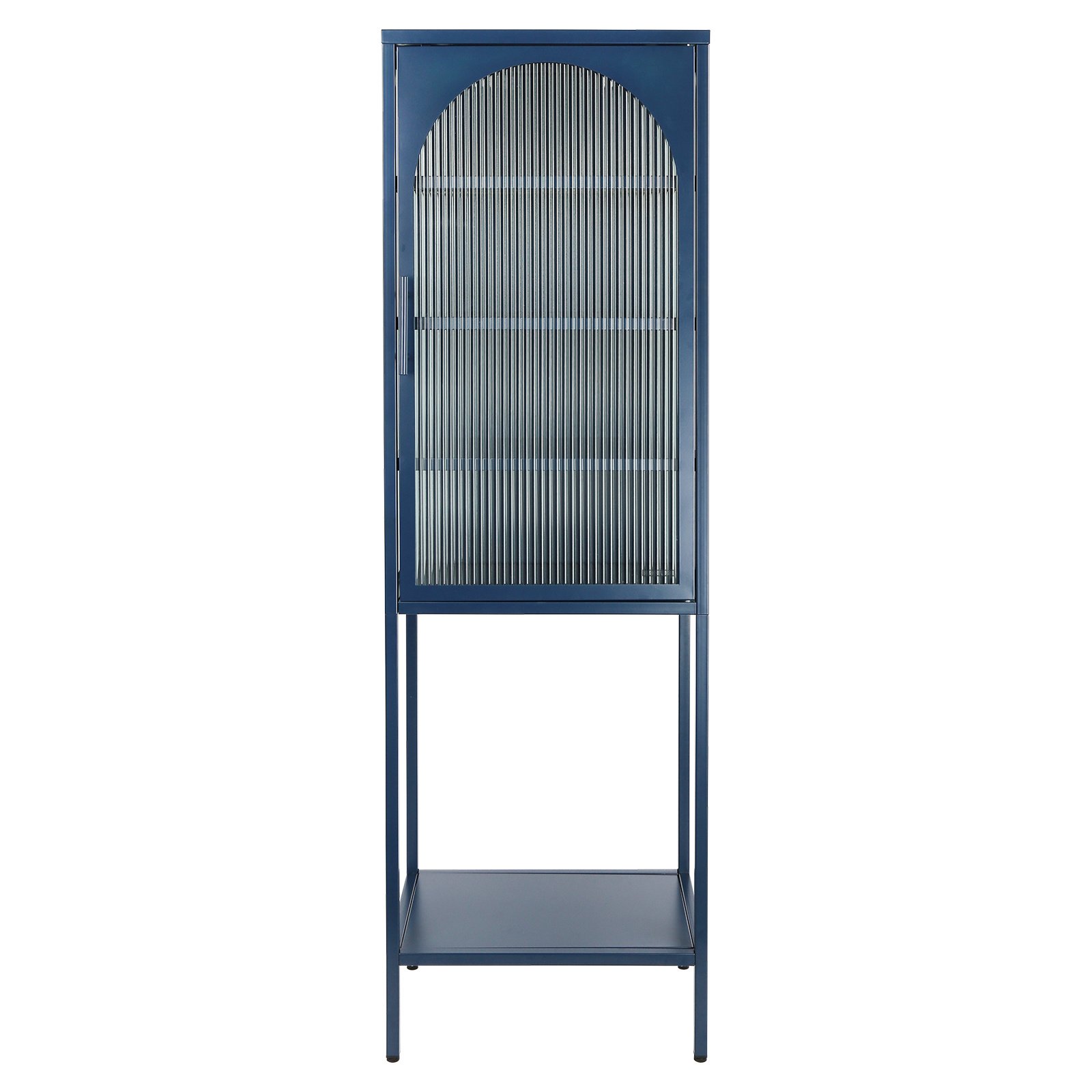 Home > Stylish Tempered Glass High Cabinet with Arched Door Adjustable Shelves and Feet Anti-Tip Dust-free Fluted Glass Kitchen Credenza Blue