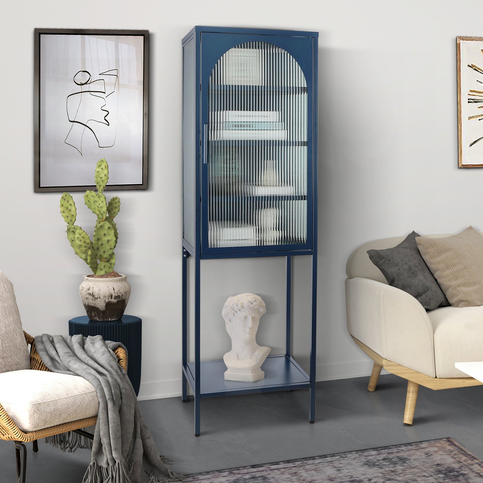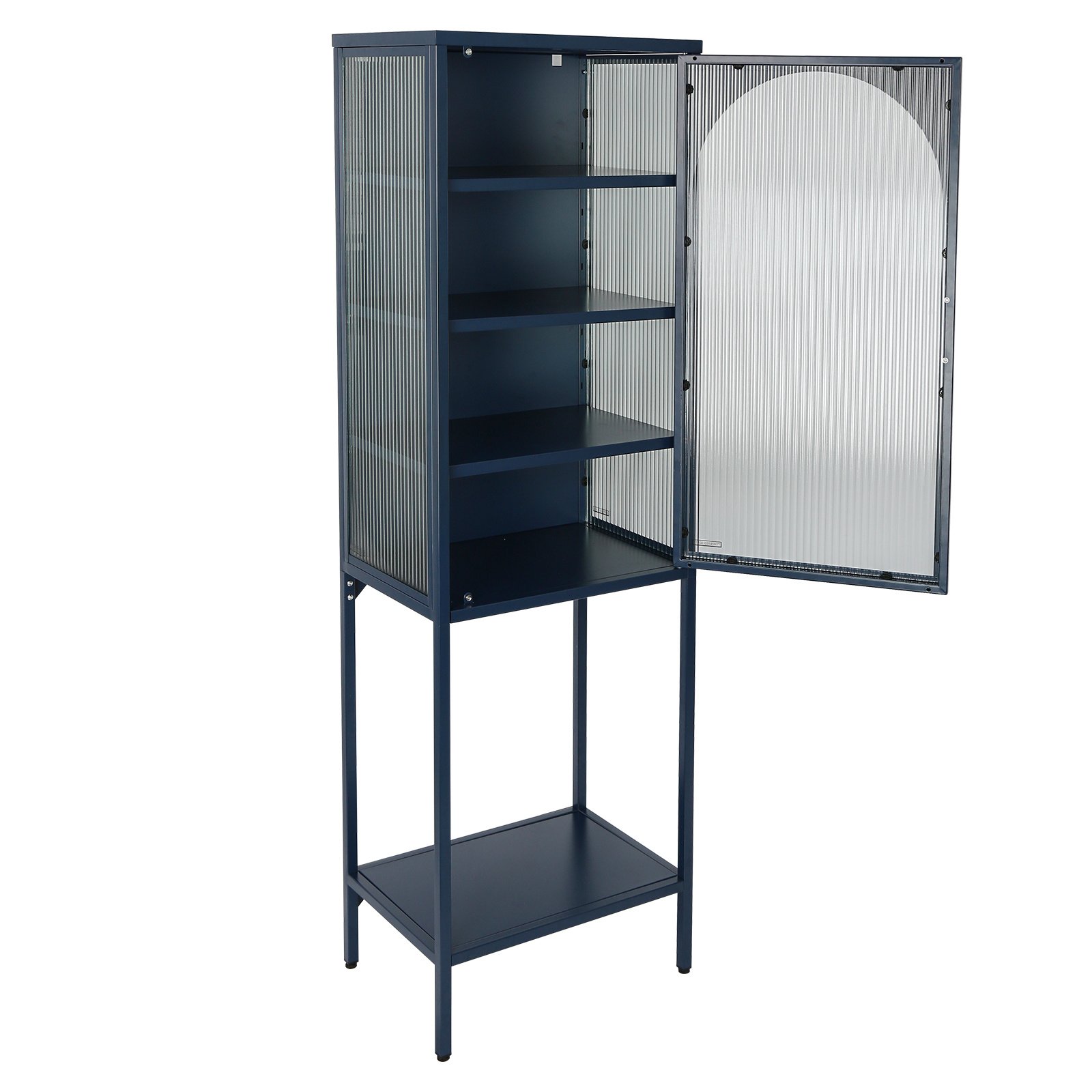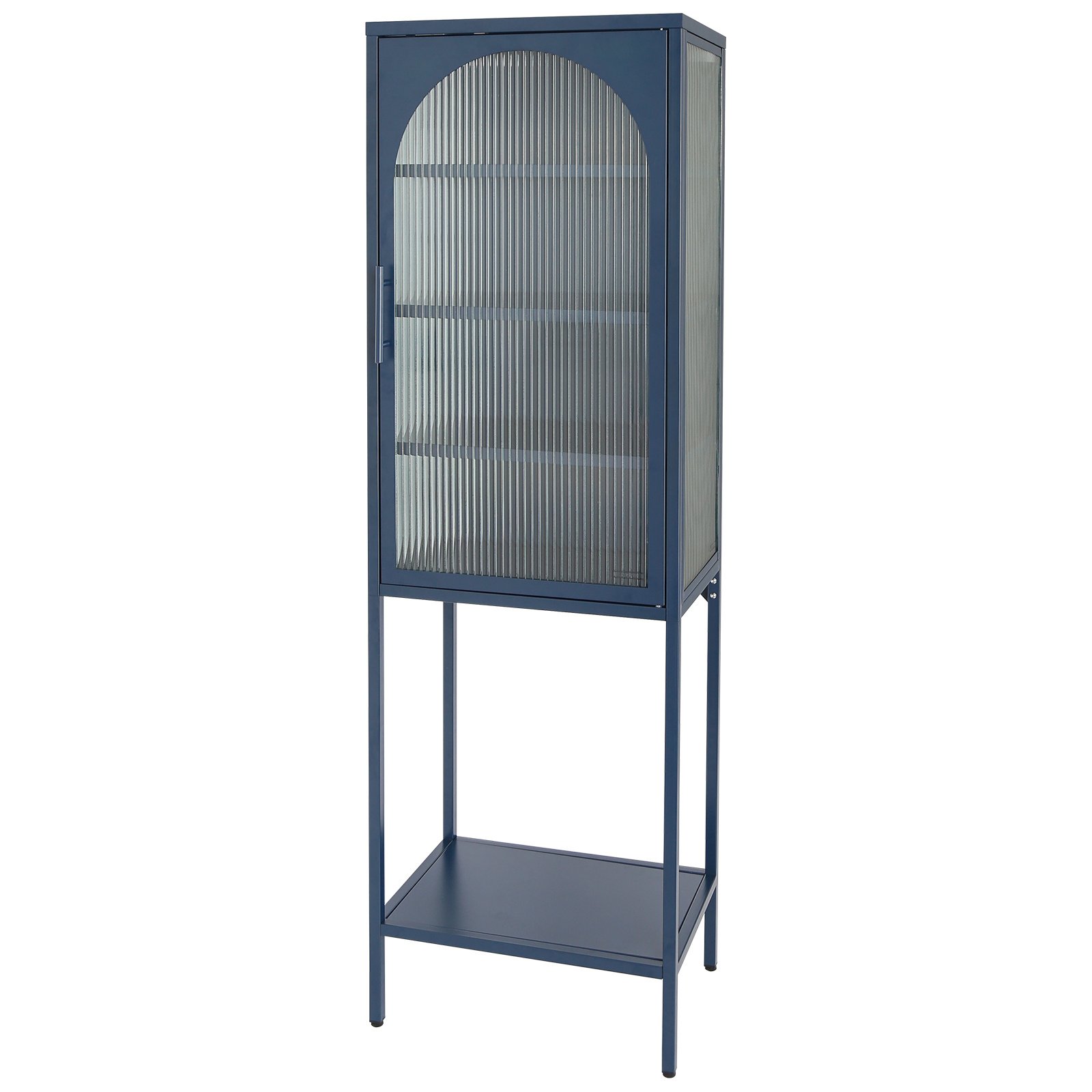 Home > Stylish Tempered Glass High Cabinet with Arched Door Adjustable Shelves and Feet Anti-Tip Dust-free Fluted Glass Kitchen Credenza Blue